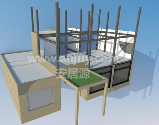 組裝房 - 特點1、材料環保,可回收利用;2、建設速度快,施工周期短;3、材料工廠化加工,現場裝配化施工,減少了施工對環境的影響,實現
